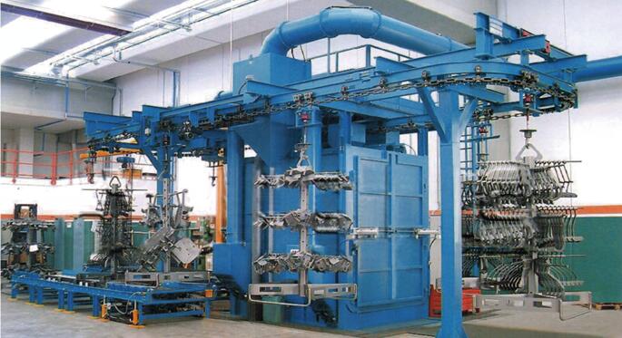 履帶式拋丸機前身叫鏈板式拋丸機,適用于清理不怕碰撞的中小型鑄件,因為其結構主要是一條可以正反運轉的金屬鏈板,配合左右各一圓盤,形成一個可以容納鑄件的凹形空間,拋丸器從空間的上方噴下鋼丸來,即可實現零......